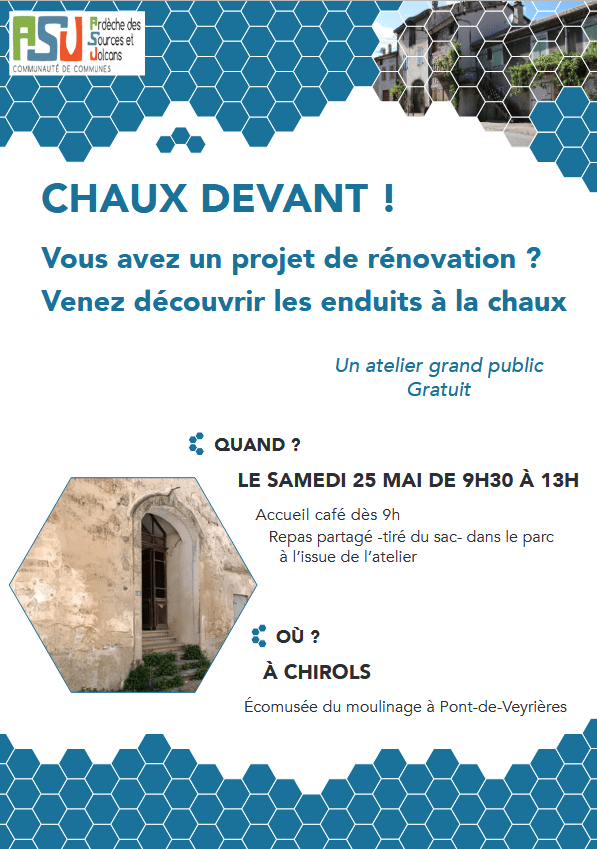 Ateliers sur les enduits à la chaux les vendredi et samedi 25 mai 2024 à Chirols Pont de Veyrieres