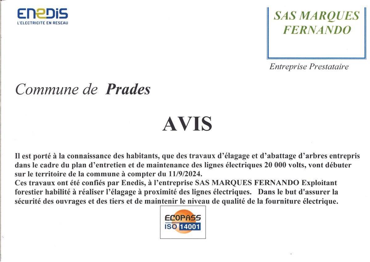 Avis d’élagage sur la commune de Prades à partir du 11/09/2024
