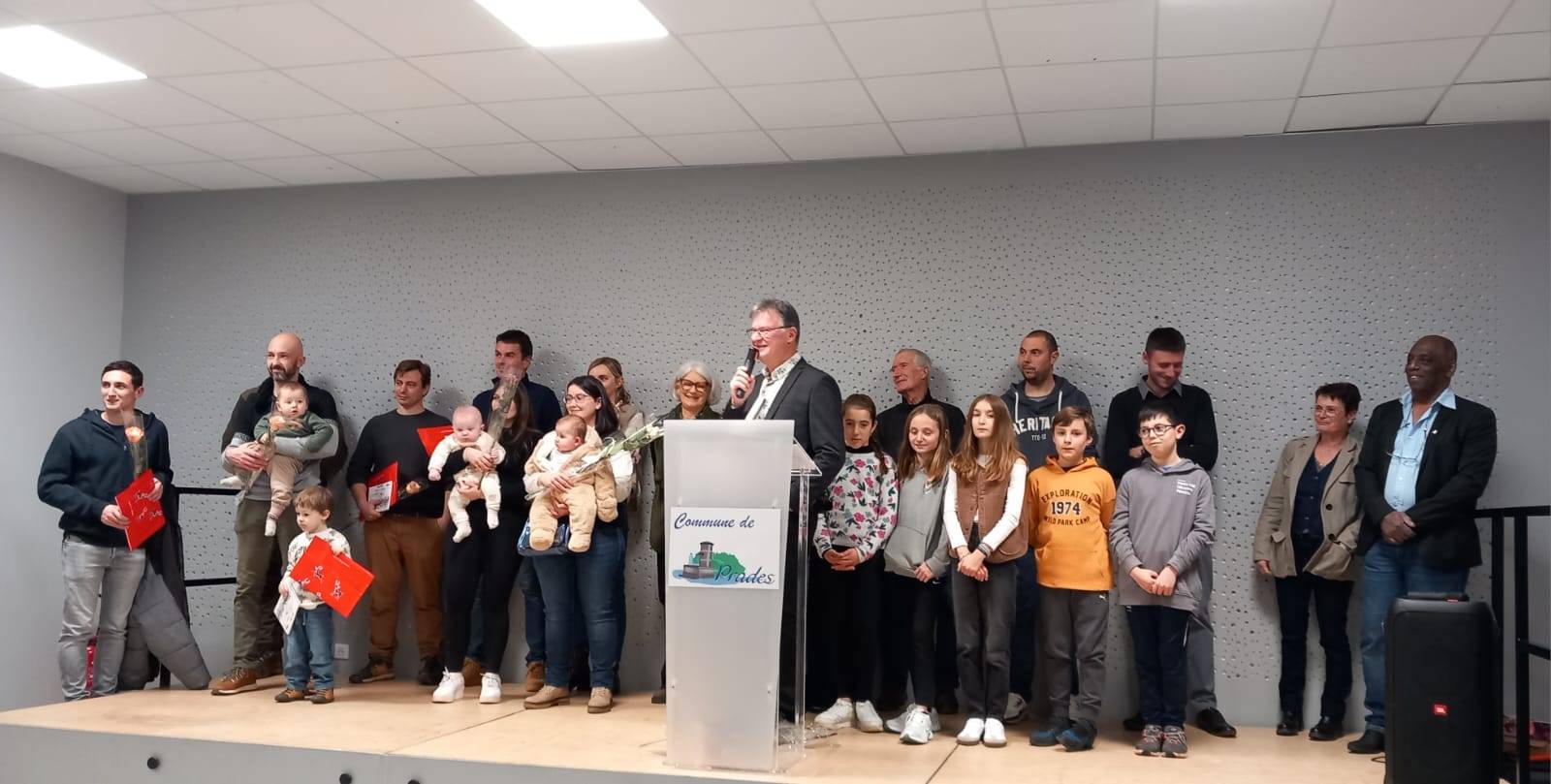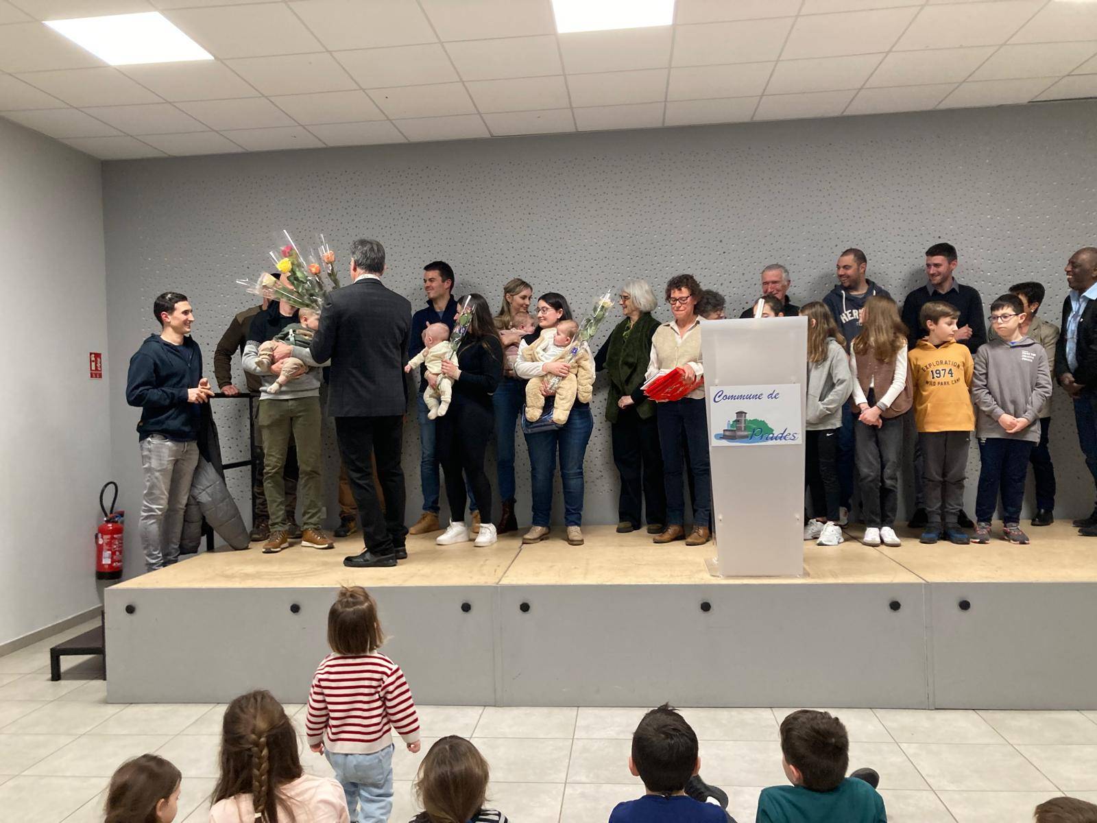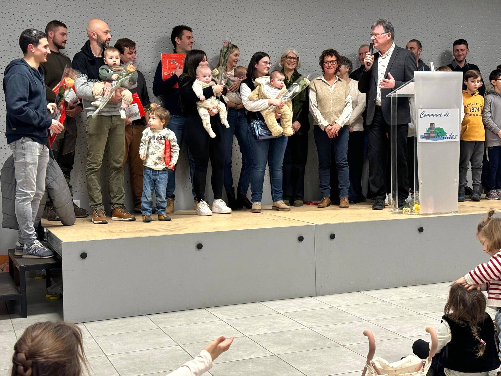 Heureux enfin, d’accueillir les nouveaux habitants et de mettre à l’honneur les 9 bébés nés en 2025, en les invitant sur scène, pour leur remettre un petit cadeau.